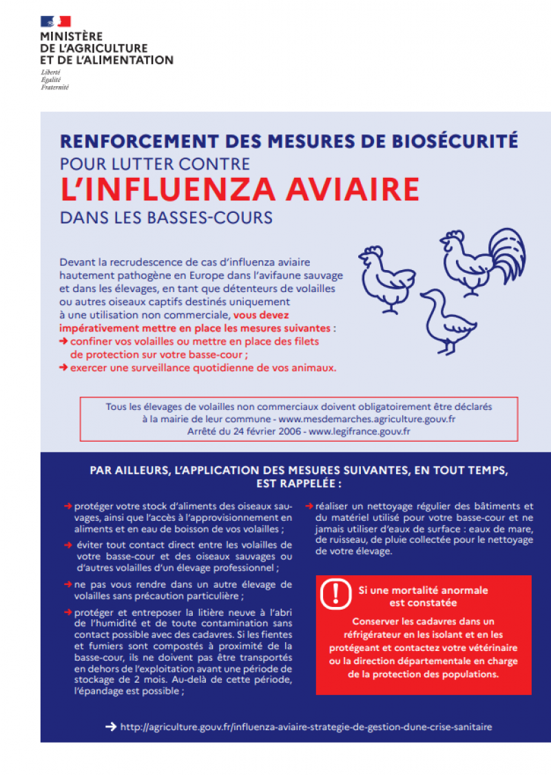 PRÉFECTURE - Risque élevé d’Influenza Aviaire Hautement Pathogène (IAHP) et mesures de gestion des cadavres d’oiseaux sauvages