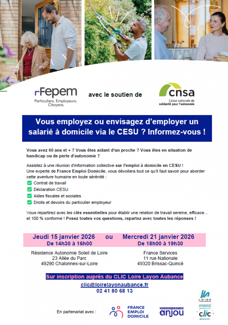 CLIC LOIRE LAYON AUBANCE - RÉUNIONS D'INFORMATION SUR LE CESU LES 15 JANVIER 2026 ET 21 JANVIER 2026